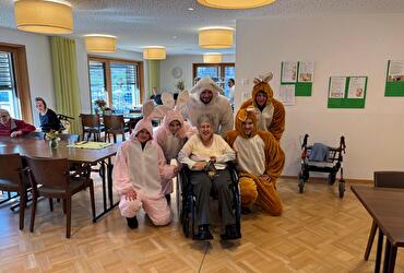 Am Karfreitag haben sich unsere Bewohnerinnen und Bewohner vor dem Rubiswil versammelt, um die Anfahrt des Überraschungsbesuches auf zwei Rädern zu sehen. Es kamen 37 Motorradfahrer im Hasenkostüm....
